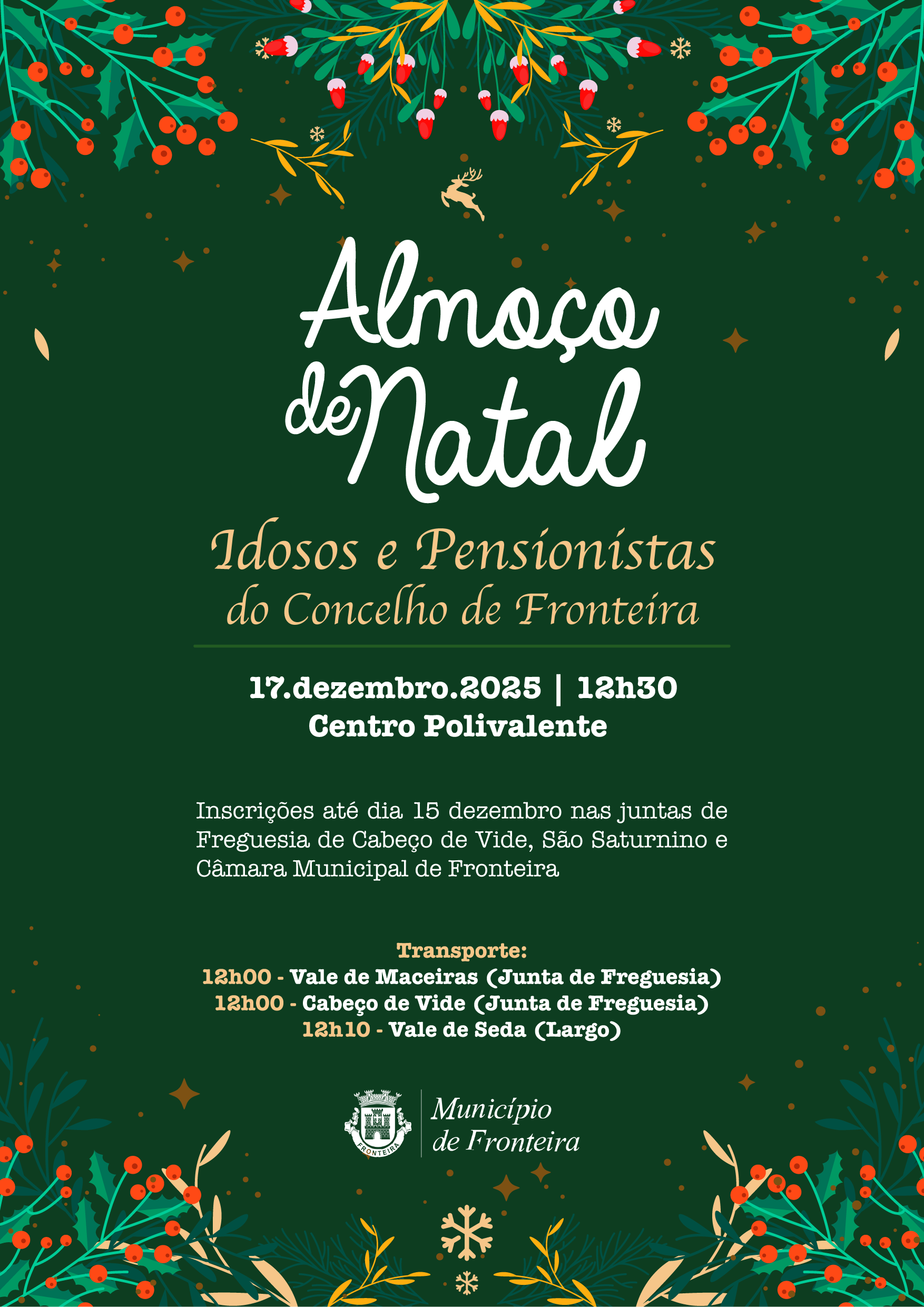 O Município de Fronteira vai realizar o tradicional Almoço de Natal destinado a Idosos e Pensionistas do concelho, no próximo dia 17 de dezembro de 2025, às 12h30, no Centro Polivalente. A iniciativa, promovida anualmente, pretende proporcionar um momento de convívio, celebração e espírito natalício a todos os participantes.